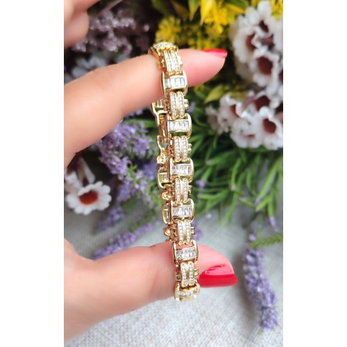 14 K ( ALTIN KAPLAMA ) ZİRKON TAŞLI ZERNA VİP BİLEKLİK B78A15