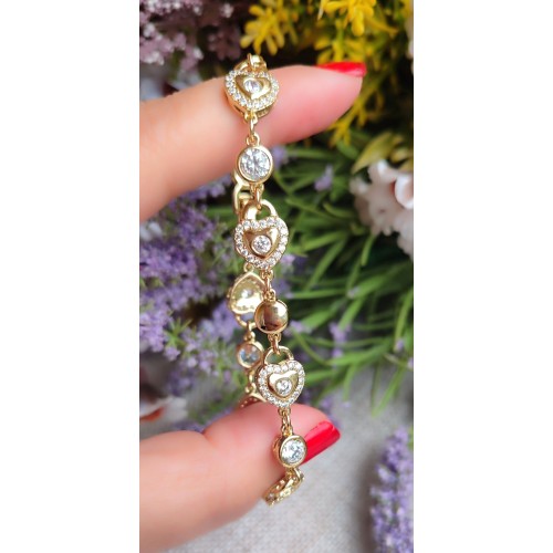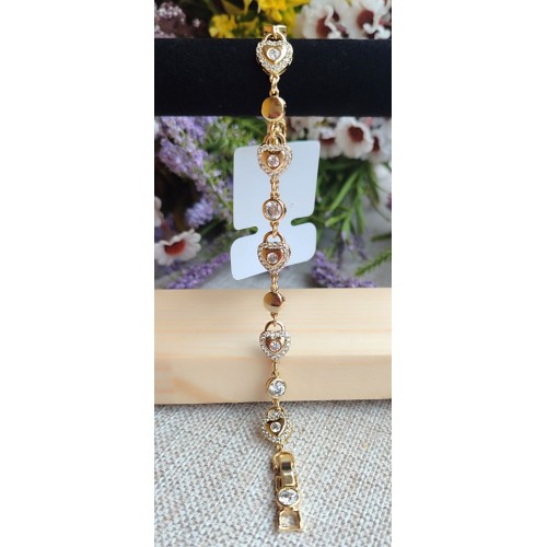 14 K ( ALTIN KAPLAMA ) ZİRKON TAŞLI KALP MOTİFLİ VİP BİLEKLİK B92A16