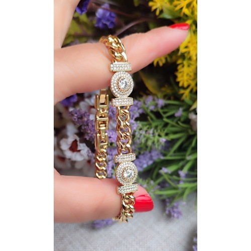 14 K ( ALTIN KAPLAMA ) ZİRKON TAŞLI KORBUS VİP BİLEKLİK B93A16