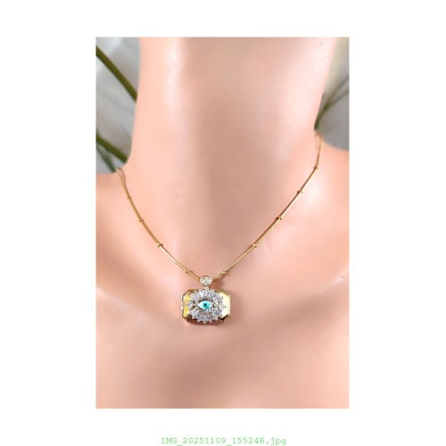 14 K (ALTIN KAPLAMA) ZİRKON TAŞLI NAZAR BONCUKLU GÖZ DESENLİ KOLYE K4Z10