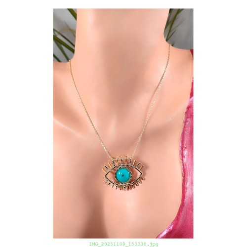 • 14 K (ALTIN KAPLAMA) ZİRKON TAŞLI GÖZ DESENLİ KOLYE K7Z10