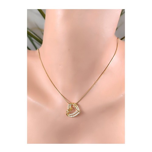 14 K (ALTIN KAPLAMA) ZİRKON TAŞLI KALPLİ KOLYE K9Z10