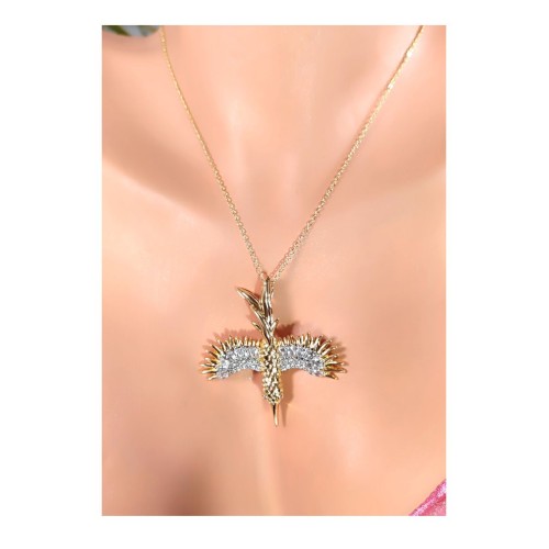 14 K (ALTIN KAPLAMA) ZİRKON TAŞLI KUŞ MOTİFLİ KOLYE K16Z10