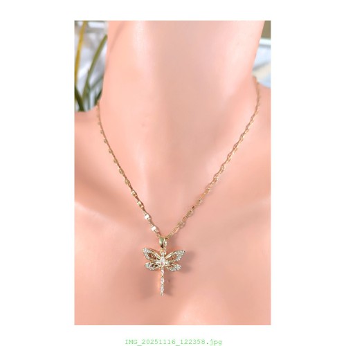 14 K (ALTIN KAPLAMA) ZİRKON TAŞLI KELEBEK MOTİFLİ KOLYE K21Z11