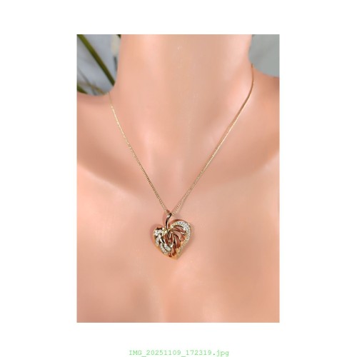 14 K (ALTIN KAPLAMA) ZİRKON TAŞLI KALP DESENLİ KOLYE K25Z11