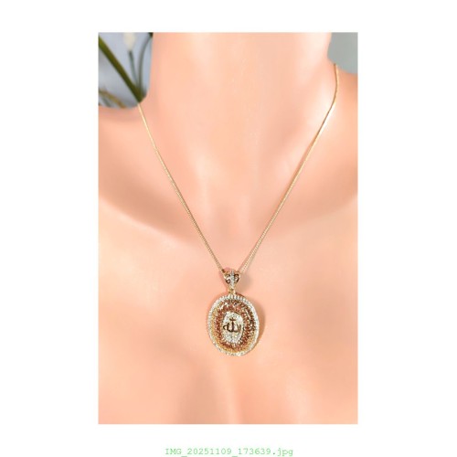14 K (ALTIN KAPLAMA) ZİRKON TAŞLI ALLAH YAZI DESENLİ KOLYE K26Z11