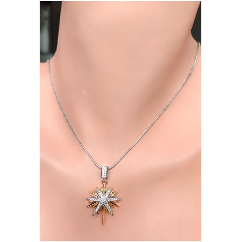 14 K (ALTIN KAPLAMA) ZİRKON TAŞLI KALP KOLYE K33Z12