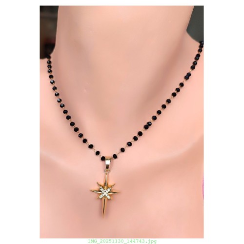 14 K (ALTIN KAPLAMA) ZİRKON TAŞLI SİYAH BONCUKLU KOLYE K50Z13