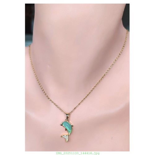 • 14 K (ALTIN KAPLAMA) ZİRKON TAŞLI YUNUS MOTİFLİ KOLYE K51Z13