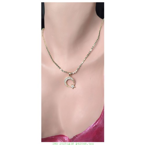 14 K (ALTIN KAPLAMA) ZİRKON TAŞLI VİP AY YILDIZ MOTİFLİ KOLYE K54Z13