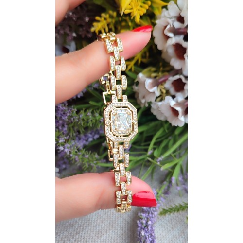 14 K ( ALTIN KAPLAMA ) ZİRKON TAŞLI KUART VİP BİLEKLİK B84A16